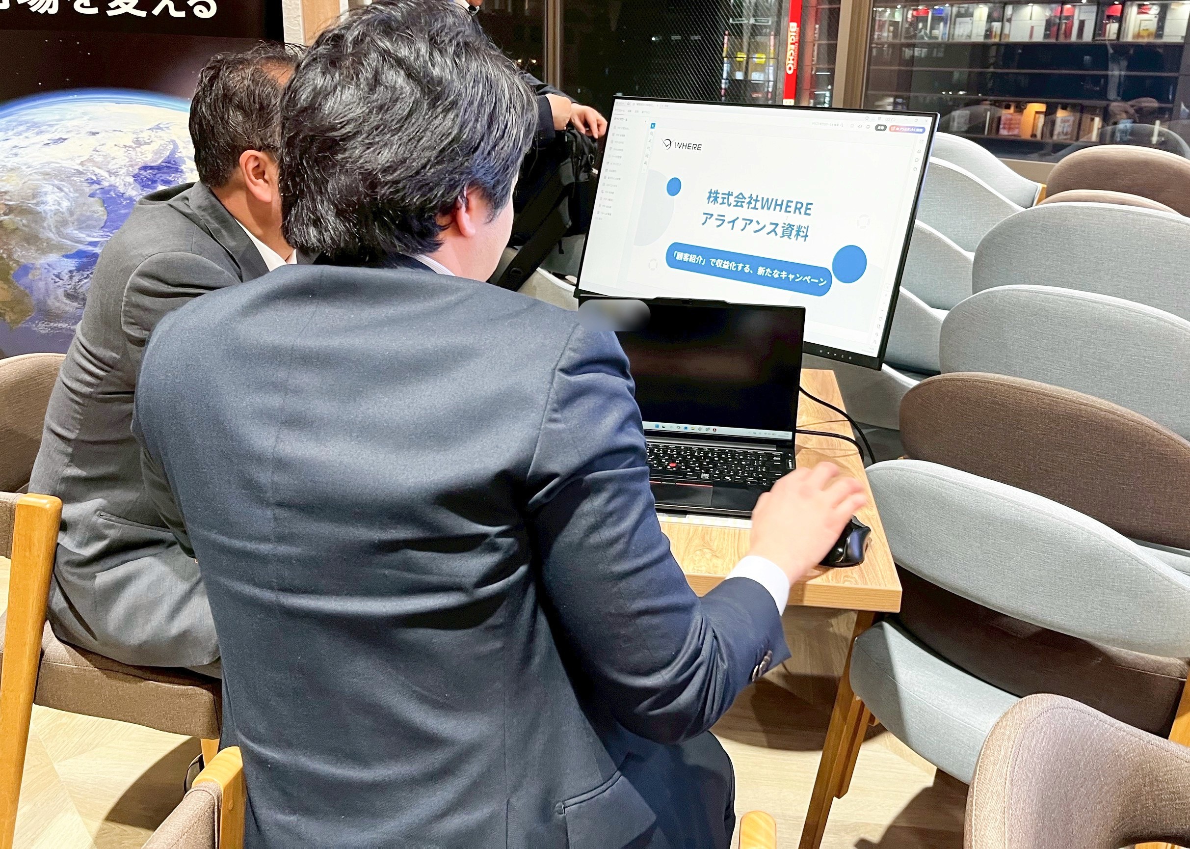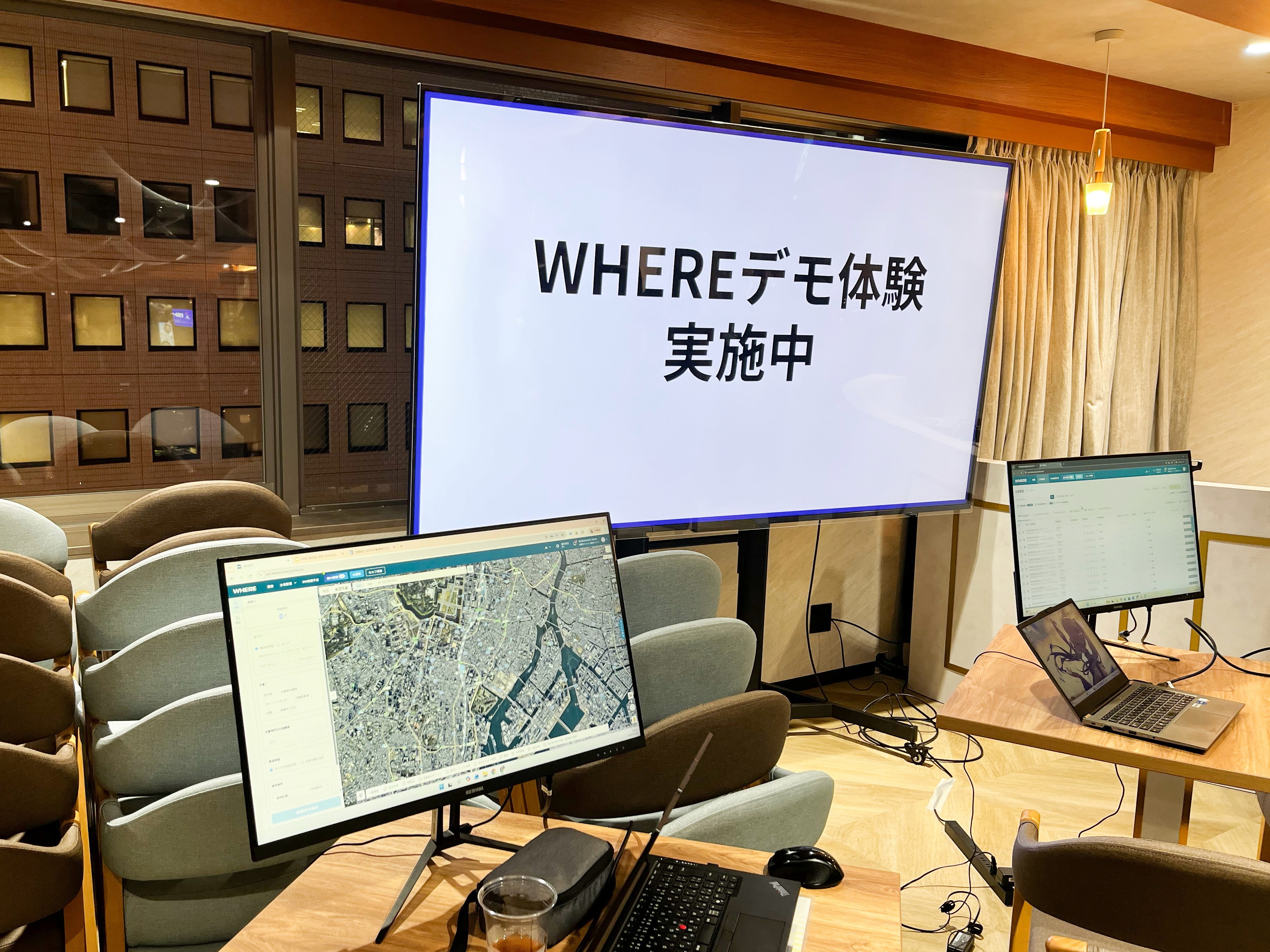 前回の交流会に引き続き、フロアの一角に「WHERE」の体験ブースを設営。